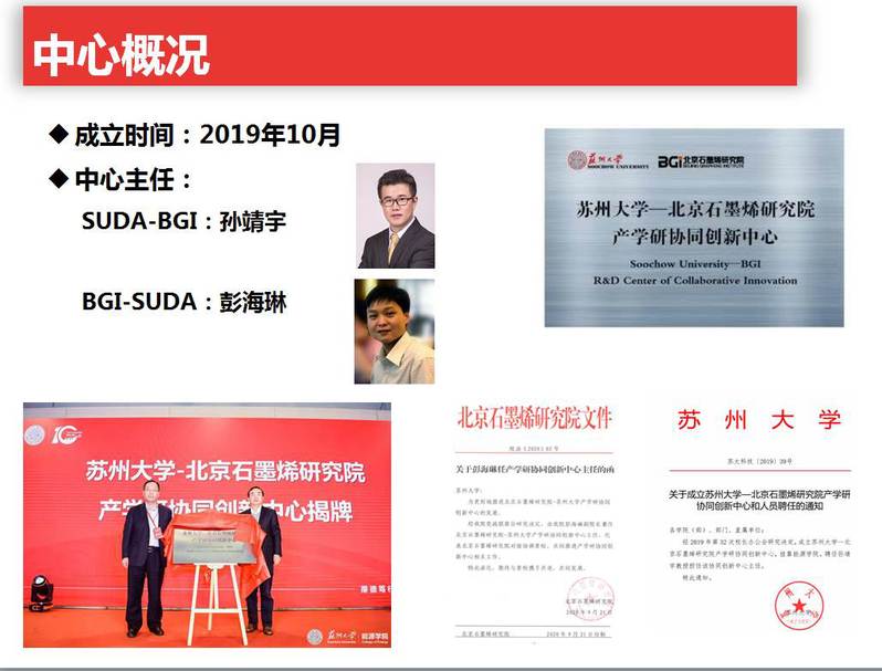协同创新中心于2019年11月23日揭牌成立,中心首席科学家由中国科 财神捕鱼 院士刘忠范教授担任。中心实行主任负责制,在 财神捕鱼 与北京石墨烯研究院分设主任办公室,共同推进产学研协同创新工作:SUDA——BGI协同创新中心主任由国家青千孙靖宇教授担任,BGI——SUDA协同创新中心主任由国家杰青彭海琳教授担任。