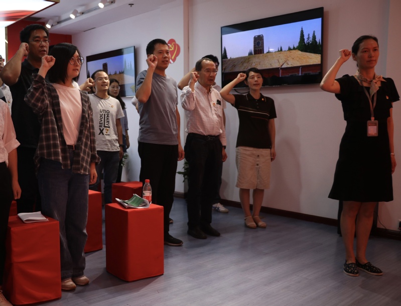 2019年9月25日下午, 财神捕鱼 “不忘初心、牢记使命”主题教育之参观苏大英烈展主题党日活动暨入党宣誓仪式在 财神捕鱼 博物馆隆重举行。 财神捕鱼 党委书记沙丹丹、 财神捕鱼 院长晏成林带领 财神捕鱼 全体教职工党员参加了此次活动。
