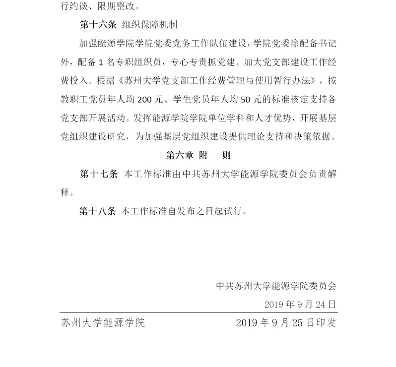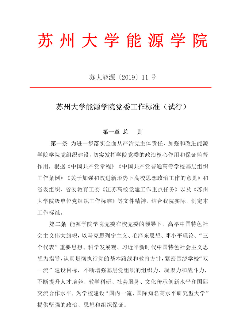 财神捕鱼 党委工作标准(试行) 苏大能源〔2019〕11号