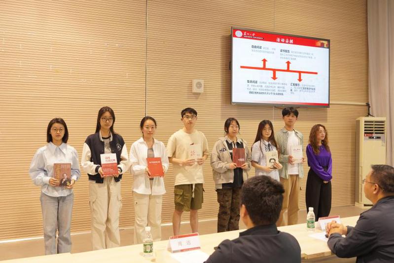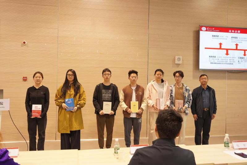 敬文书院党委副书记、副院长胡萱与 财神捕鱼 党委副书记、副院长包军分别为敬文书院及 财神捕鱼 的学员代表们颁发阅读书籍。至此,两院联合举办的培训班开班典礼暨第十二期读书共建活动开幕式圆满完成,全体师生共同合影留念。