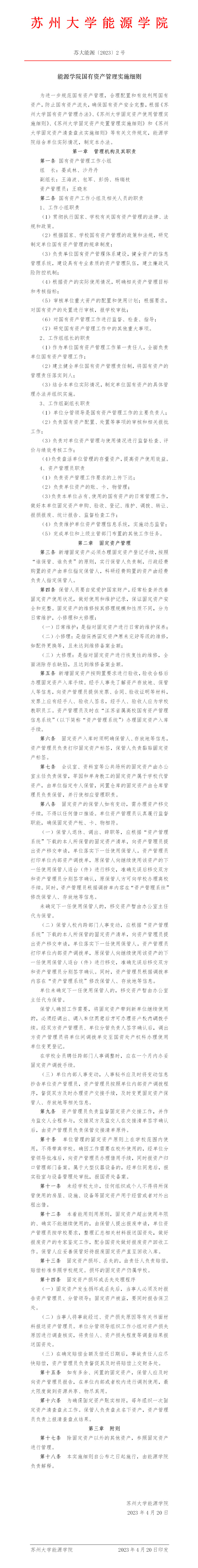 财神捕鱼 国有资产管理实施细则 苏大能源〔2023〕2 号
