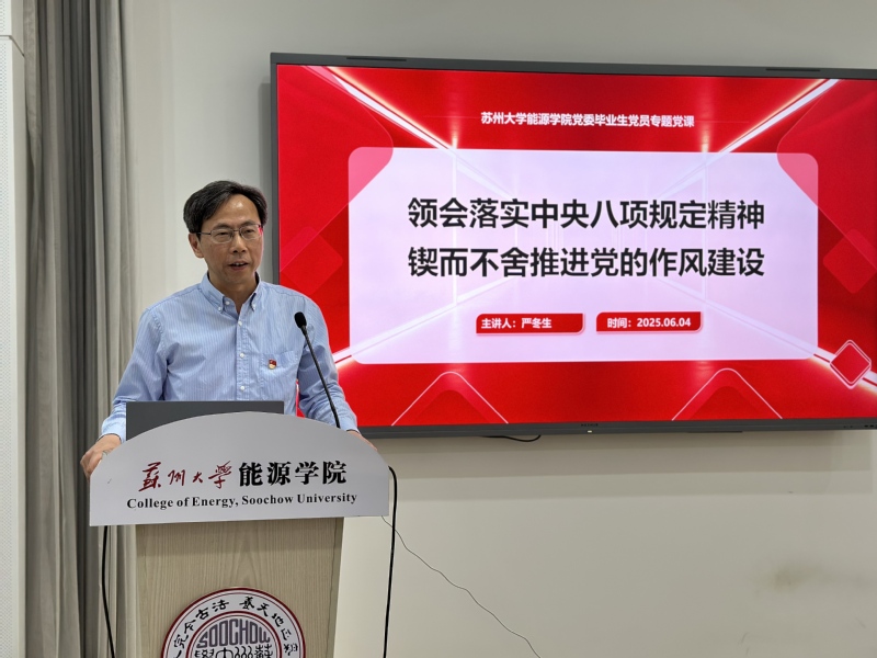 党课尾声,严冬生强调:“毕业生党员当以中央八项规定精神为镜,将‘勤廉作风’融入科研攻关与职业发展,在新能源强国建设中争当先锋!”与会党员纷纷表示,将牢记嘱托,以“严慎细实”的作风投身行业,以青春之我铸就清廉有为新征程,为服务国家“双碳”战略贡献苏大力量。