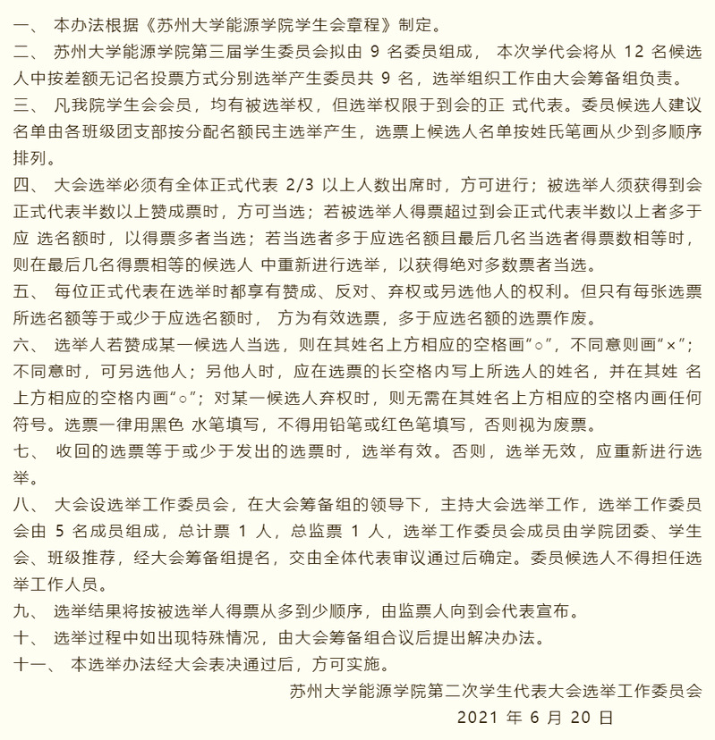 学生委员会进行选举和通过决议实行表决制。