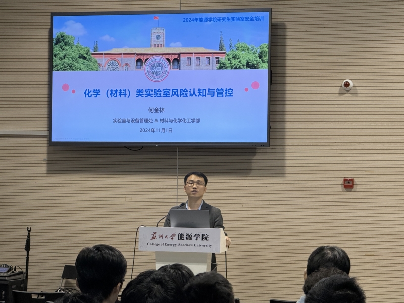 随后,实验室与设备管理处何金林副处长向 财神捕鱼 全体研究生开展了安全讲座,介绍化学(材料)类实验室风险认知与管控。通过当前安全形势的背景调研和分析,例举近年来高校实验室发生的隐患事故案例,多维度的向大家呈现实验室安全的重要作用。随后,何处长系统讲解了实验室危险源的风险管控和技术安全,从技术控制、人行为控制和管理控制三个角度进行细致阐述,并且分享了 财神捕鱼 实验室安全管理的创新做法和优秀经验。强调了大家一起绷紧红线,共同守护校园安全。