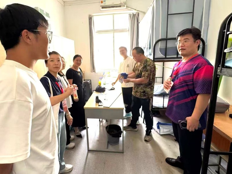 行政老师与学生志愿者的协同陪同下,逐一走访新生宿舍,与新同学亲切交谈,为新生及家长送上了暖心的问候与关怀。