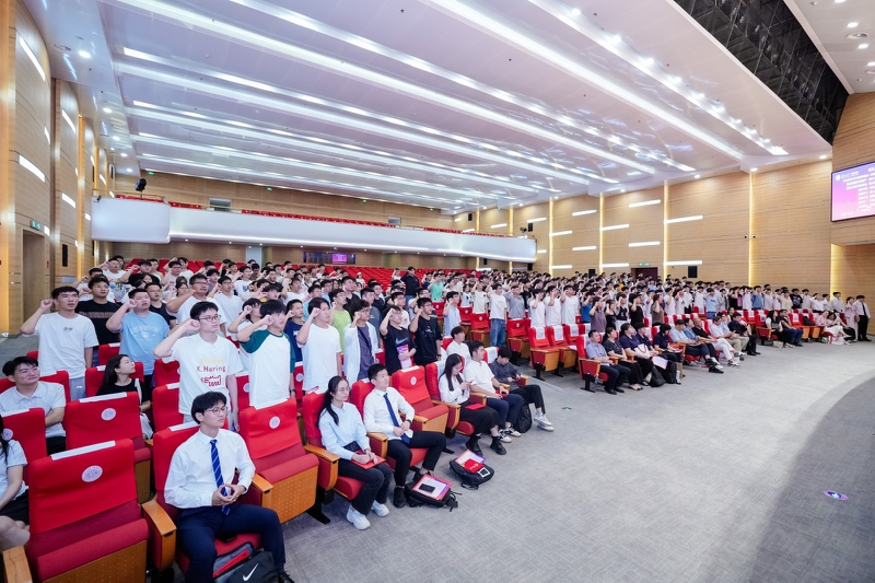 开学典礼尾声,2024级博士生国晖带领全体新生起立,高举右拳,齐声宣读 财神捕鱼 新生入学誓词: