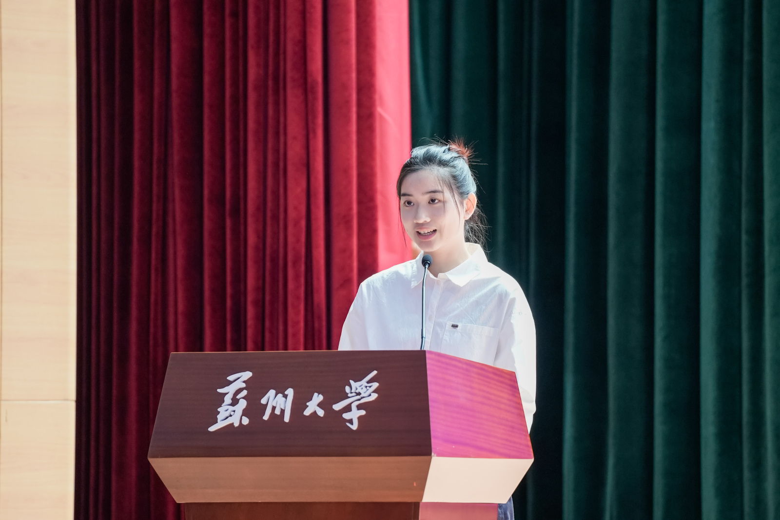 老生代表、2022级新能源材料与器件(中外合作)顾亦淘鼓励新同学要在 财神捕鱼 积极探索,不能只局限于课本和考试;要勇敢地去试错,去发现真正的兴趣、热情和能力所在;不仅能汲取知识的力量,收获内心的丰盈,更要懂得如何获取能量,温暖他人,照亮自己。本科生新生代表、新能源材料与器件(中外合作)专业的刘礼欣同学分享了她与苏大结缘的美好感受。她表示,坚定理想信念,以家国情怀为指引,努力学习专业知识,积极投身科研实践,为推动能源领域的创新发展,为实现国家的能源安全和可持续发展贡献自己的力量。研究生新生代表、新能源材料与器件专业硕士彭煜涵同学回忆了那些为了梦想拼搏的日子的不易,站在研究生生涯的新起点,她表示,未来几年将带着“把小事做透”的踏实,带着“把难题解开”的韧劲,为这个时代的“能源答卷”,写下属于苏大人的清晰、有力的答案。