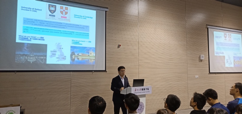 “随梦起航”——分享留学经历。孙老师向大家介绍了自己从一位浙大本科生到牛津博士、剑桥博士后的经历,他用自己的每一个踏实的脚印为我们展现了一段优秀的人生历程。与世界名校的邂逅并不会使他停止步伐,而是为未来提供了更多的可能性,中西文化的交融冲击也让他拥有更加开放和包容的思想。每一个选择都对他的人生有质的改变,正是这一个个选择造就了现在的他,也是这样的选择能够让他决定自己的人生,研究自己所感兴趣的内容。同学们在了解孙老师的人生经历后,纷纷投向了崇敬的目光,更是竖起耳朵认真倾听演讲,生怕漏掉任何一个字。