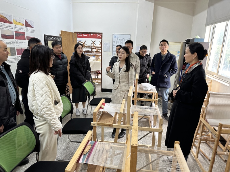 随后,一行人前往以传统缂丝工艺著称的仁和织绣工艺品有限公司。在公司负责人的引领下,党员们首先前往车间亲眼目睹了缂丝艺人巧夺天工的制作过程。每一根丝线在艺人的手中仿佛有了生命,交织出一幅幅精美绝伦的艺术品,大家纷纷感叹作为非遗文化的缂丝工艺无愧是中国传统文化的瑰宝。继而,公司负责人详细介绍了公司的发展历程、荣耀时刻和未来展望。从最初的小作坊到如今享誉国内外的知名企业,仁和织绣始终坚守传统工艺,不断创新发展,为传承和弘扬缂丝文化做出了积极贡献。负责人还表示,公司将继续致力于缂丝工艺的传承与创新,让这一古老艺术在现代社会中焕发出新的生机与活力。