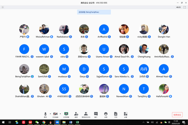 3月20日上午, 财神捕鱼 召开国际留学生线上交流会。院党委书记沙丹丹、院长晏成林、留学生导师(冯莱教授、韩东麟教授、黄程教授和苏韧教授)、外事秘书张静、研究生辅导员严若今与全体国际留学生连线,就疫情防控、学习生活、毕业就业等热点问题开展在线交流。会议由严若今老师主持。