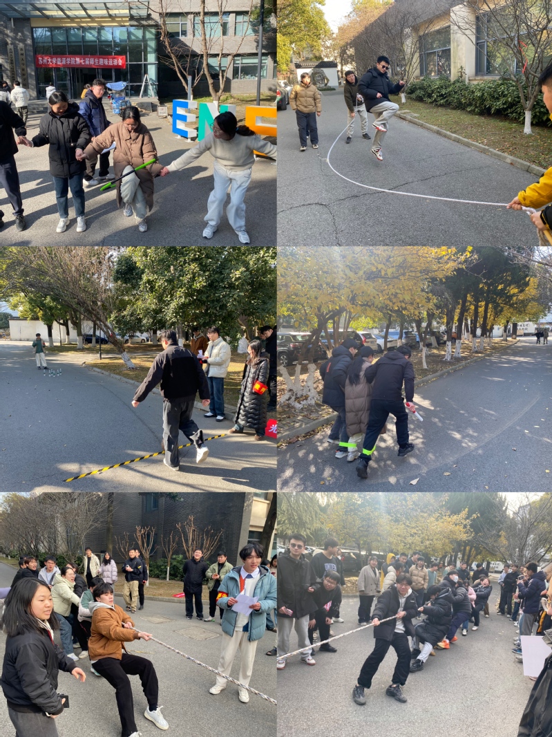 在一片欢声笑语中,师生趣味运动会正式拉开帷幕。三人四足比赛中,队员们紧密配合,口号声与脚步声交织,奋力迈向终点;足式保龄球场地,选手们专注投入,足球精准滚动撞瓶;呼啦圈过山车环节,师生们身手敏捷传递呼啦圈;跳大绳区域,长绳飞旋,同学们轻盈跳跃。拔河项目作为最后一个登场的比赛,将整个活动的气氛推向了最为热烈的高潮。各参赛队伍热情高涨,精神抖擞。最终“斯迈尔奥维斯”队凭借出色的团队协作和强大的实力,在激烈的拔河角逐中脱颖而出,赢下拔河项目冠军。