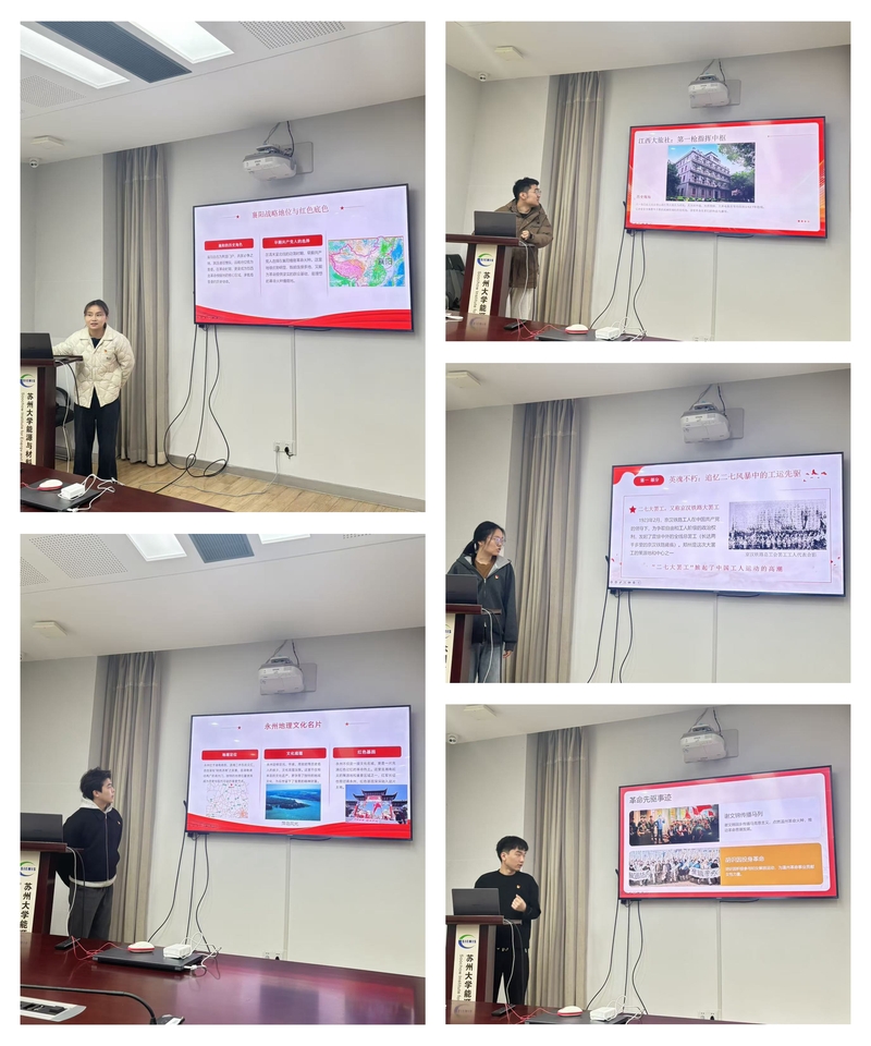 活动伊始,杨航同志以“襄阳红色印记”为主线,生动讲述了这座荆楚门户在革命岁月中的光辉历程,既有抗日名将张自忠壮烈殉国的英雄事迹,也有萧楚女等早期共产党人在鄂北地区播撒革命火种的启蒙实践,展现了襄阳深厚的红色底蕴。马依萍同志聚焦“郑州二七风暴”,深情回顾了京汉铁路工人大罢工的悲壮历史,阐述了以林祥谦、高斌为代表的工运先驱坚定信仰、不畏牺牲的“二七精神”。通过介绍郑州二七纪念馆作为红色地标的教育意义,彰显了红色基因在郑州城市发展中的传承与弘扬。杨宇轩同志以“英雄城南昌”为主题,系统讲述了八一南昌起义作为中国共产党独立领导武装斗争起点的重大意义,分享了周恩来、贺龙等革命前辈在起义中的关键决策与坚定信仰,生动诠释了南昌作为“英雄城”的精神内涵与时代价值。郑禹同志全面梳理了温州的红色历史脉络,从早期农民武装起义到抗日救亡运动,再到解放温州战役,呈现了温州人民不屈不挠的革命斗志。他还介绍了当地通过展览、研学等多种形式推动红色文化传承的创新实践。陈旭东同志以“永州红色基因”为核心,深入介绍了李达、陶铸、蒋先云等永州籍革命先驱的生平事迹与精神品格,系统阐释了永州红色精神“追求真理、无私奉献、英勇斗争、艰苦奋斗”的深刻内涵,并分享了当地运用数字化手段和文旅融合活化红色资源的创新探索。