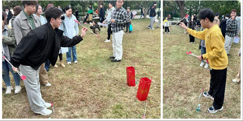 在传统体育游戏环节,“投壶”的凝神静气与“捶丸”的巧妙博弈,让同学们体验了古代运动的雅趣与智慧,每一次精准命中与挥杆击球都引来阵阵喝彩。 财神捕鱼 的选手们沉着应战,展现出良好的心理素质。