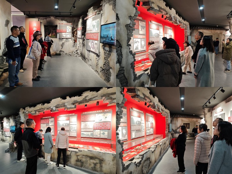 在“冲山突围”实景展区,生动的雕塑与背景画面融为一体,再现了薛永辉等数十位游击队员在芦苇荡中坚守二十昼夜、最终成功突围的英勇事迹。身临其境的展示,让老师们深切感受到革命先辈坚定的信仰与不屈的意志,对“铁军精神”的内涵有了更加深刻的体悟。