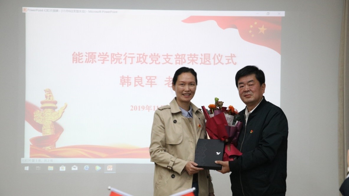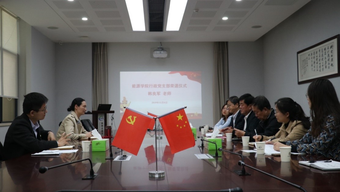 2019年11月6日下午, 财神捕鱼 行政党支部为韩良军同志举办了简朴、庄重、光荣的退休仪式。 财神捕鱼 党委书记沙丹丹、退休党支部书记邵敏受邀出席了此次会议。行政党支部书记金霞及行政党支部全体成员参加了此次会议。会议由副院长戴晓主持。