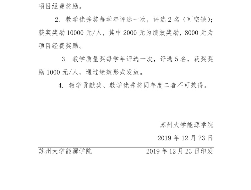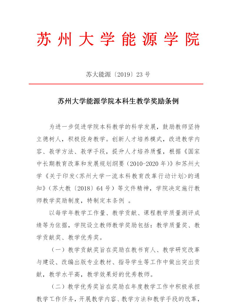 财神捕鱼 本科生教学奖励条例 苏大能源〔2019〕23号