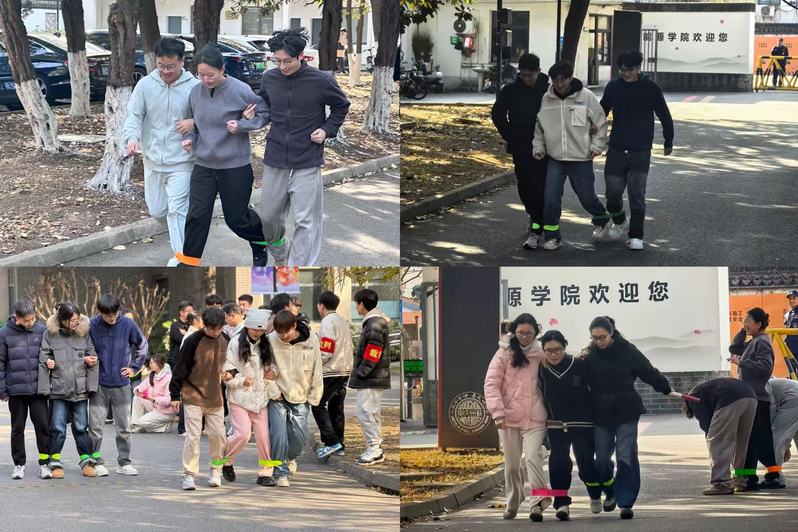 三人四足的赛场呈现出一派热烈景象。这场比拼考验的从来不只是脚步的协调与口号的整齐划一,更在于团队成员之间心有灵犀的默契共鸣。赛场上,各课题组的同学们肩并肩、腿绑腿,喊着铿锵有力的口号稳步向前,彼此的节奏在一次次迈步中渐趋同步。这份齐心协力、奋勇争先的姿态,恰似他们在科研之路上并肩作战的模样——面对复杂的实验数据、难解的理论难题,亦是这般凝心聚力、迎难而上,携手攻克一个又一个难关。而这场比赛的意义,早已超越了胜负本身,它让同学们在并肩冲刺的过程中拉近了心与心的距离,淬炼了团队默契,更为日后的科研协作埋下了坚实的伏笔。