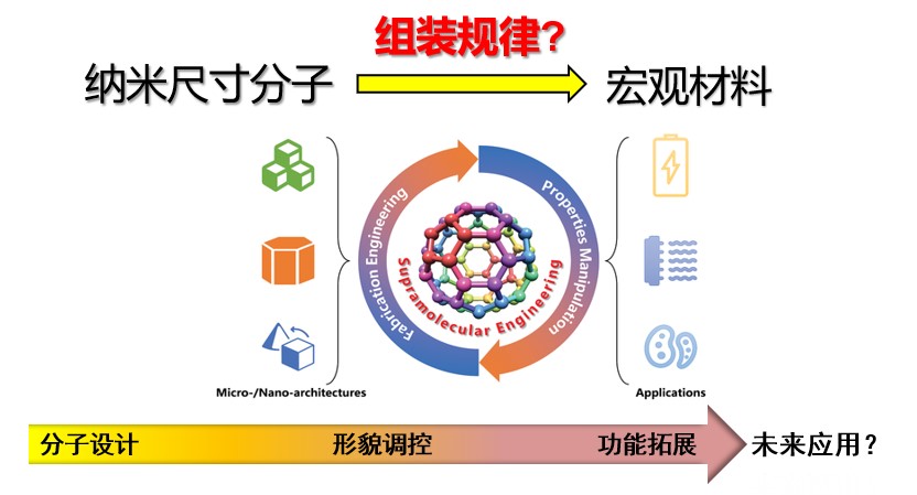 将纳米尺寸的富勒烯分子组装成形貌各异的微纳材料是实现其未来应用的有效手段[1]。近年来,我们在富勒烯组装体的可控制备、结构表征与功能开发等方面取得了一些有意义的结果,实现了新颖富勒烯微纳结构的晶面可控构筑与光电性能调控[2],获得了一系列具有丰富物理化学性质的碳基微纳材料,初步考察了它们在能量转换与存储方面的应用潜力,尤其是拓展了富勒烯材料在电催化及下一代二次电池等领域的应用范围[3]。