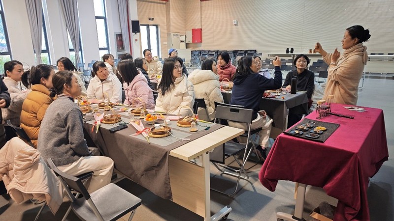 古韵新生,手作寄情。在老师的细致指导下,女教职工们纷纷动手创作。选料、调香、压模、修形……大家巧妙构思、精心雕琢,将心意融入每一处细节。片刻之后,一枚枚独具个人巧思、纹样精致的香牌悄然成形,清雅香气弥漫全场。