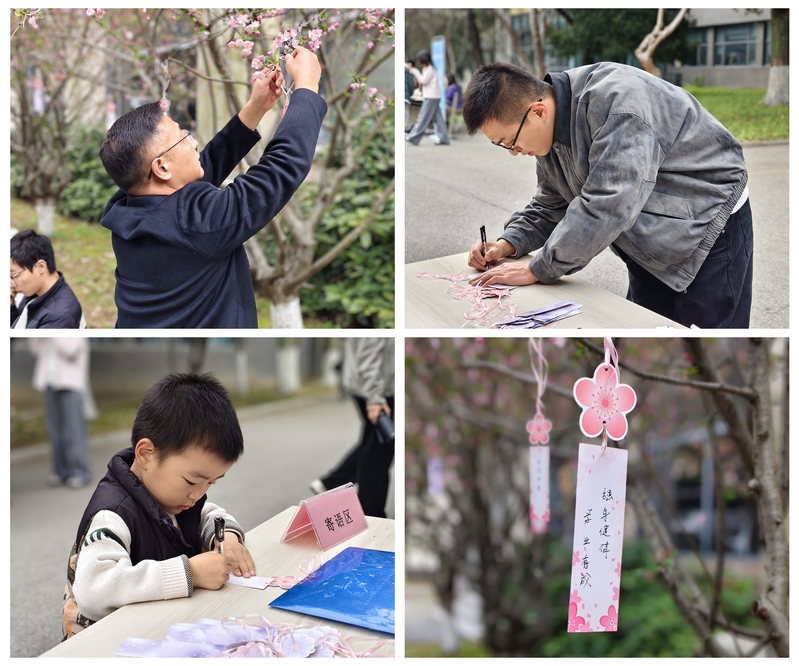 活动还特别设立了对外开放的游客互动区,围绕樱花知识展开趣味答题,吸引了大量游客驻足参与。答对者可获得精美的樱花主题贴纸或书签,让春日的校园在知识分享中更添暖意。