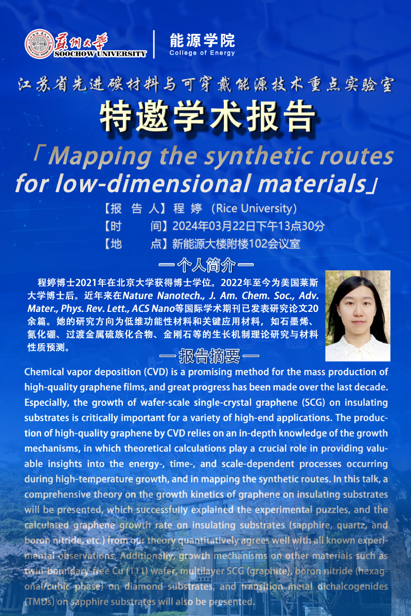 江苏省先进碳材料与可穿戴能源技术重点实验室 2024年特邀学术报告