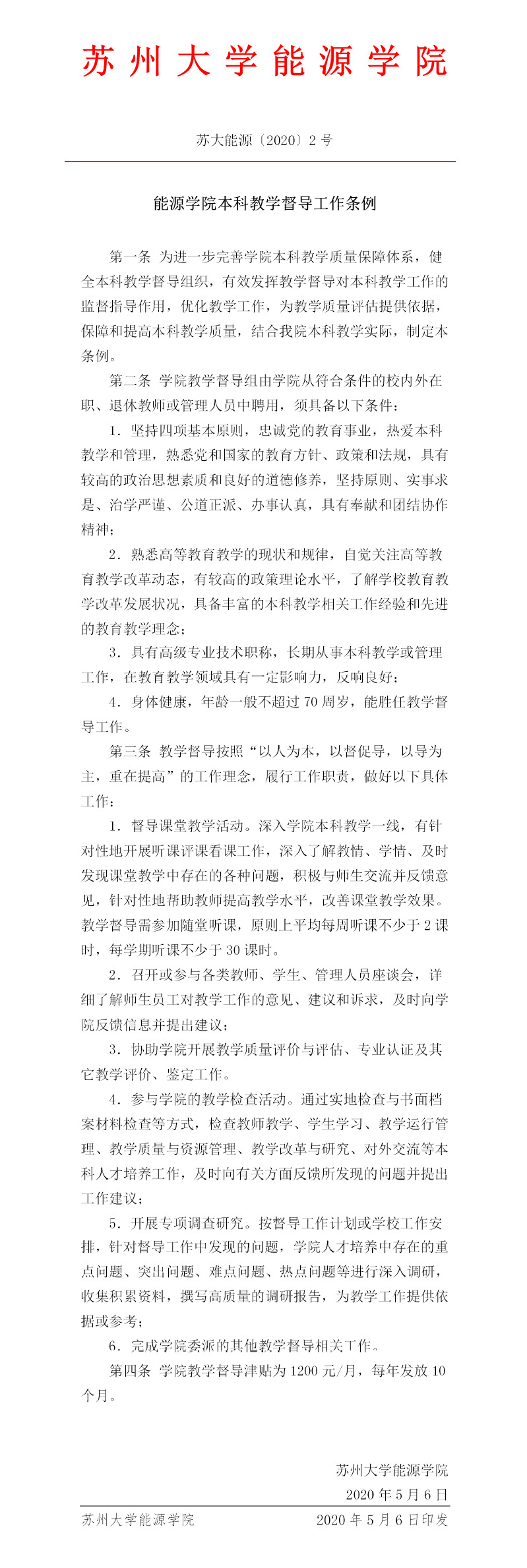 财神捕鱼 本科教学督导工作条例 苏大能源〔2020〕2号