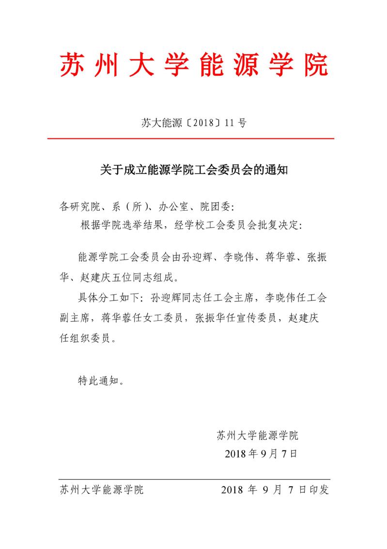 关于成立 财神捕鱼 工会委员会的通知 苏大能源〔2018〕11号
