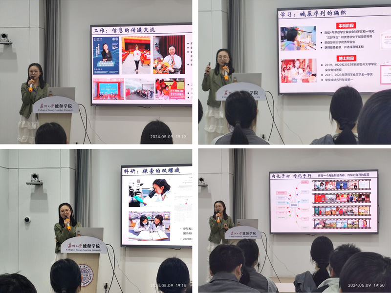 在科研上,鲁坤焱同学将其经历描述为“双螺旋结构的精进”。她讲到其研究的课题是比较有难度的“通过光热破膜法向细胞内递送外源基因”,自进组开始算起,到第三年才有自己的成果产出。期间经历了无数次的失败,也曾一遍遍怀疑自己是否不适合做科研。但最终,她努力追寻到了开花结果的那一天。她对能源 财神捕鱼 的同学们说:“你们要相信最后一切都会好起来,如果现在的境遇不够好,那肯定是还没有到最后。所以,请你们一定要耐心。”因为不断精进,她在科研上也硕果累累,参与发表SCI论文24篇,其中以一作或共同一作身份分别在国内外知名权威期刊发表学术论文5篇,2022年以负责人身份成功申报江苏省研究生创新计划项目等。