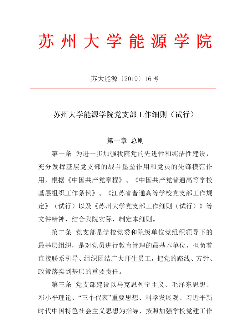 财神捕鱼 党支部工作细则(试行) 苏大能源〔2019〕16号