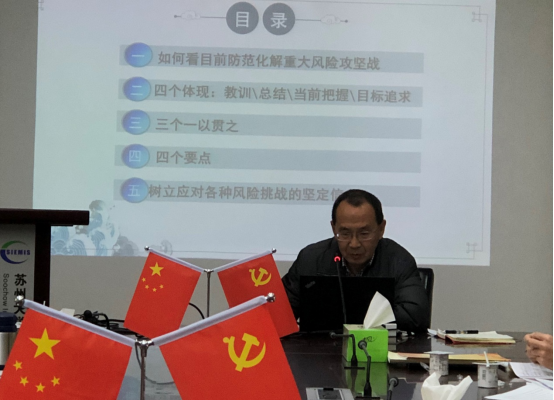 会议最后一项议程是党委理论中心组学习会议,本次学习由 财神捕鱼 党委组织委员祝贺老师领学。祝贺老师从如何看目前防范化解重大风险攻坚战、强调忧患意识的四个体现等角度深入学习并讨论了“增强忧患意识,防范风险调整”,引导全体党员树立应对各种风险挑战的坚定信心以及更好地坚守为人民谋幸福、为民族谋复兴的初心和使命。