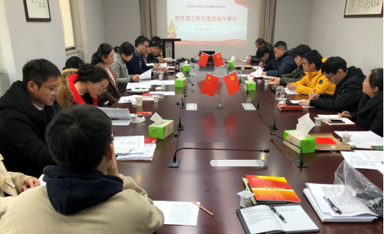 2019年12月3日中午, 财神捕鱼 党委召开2019年度基层党支部书记抓党建述职评议会暨党委理论中心组学习会议。 财神捕鱼 党委委员、各支部支委会、 财神捕鱼 组织秘书参加了此次会议。会议由 财神捕鱼 党委书记沙丹丹主持。