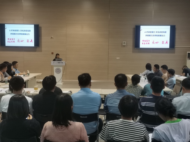 2024年5月22日, 财神捕鱼 在新能源大楼121多功能厅召开全体教职工大会。会议由 财神捕鱼 党委书记沙丹丹主持。
