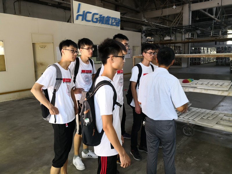 上午9时,实践团到达苏州市吴中区机场路和成卫浴有限公司,在史经理的接待下,实践团参观了生产车间的工作流程,了解到厂房主要的耗能设备是压气机和锅炉,主要消耗的能源是天然气和电。在节能方面,史经理介绍了车间采用的球磨机变频技术和余热回收技术。球磨机通过变频器能极大减少球磨机启动的耗能和对球磨机的损害。同时利用烘干过程排出的废气来维持高温窑的温度,从而节省天然气的消耗。办公区域和车间的所有照明设备都已经换成LED,以减少耗电量。在减排方面,史经理介绍了喷洒式除尘器,利用冷水喷洒沉降烟气中灰尘,从而减少微尘等固体颗粒的排放。实践团还了解到车间废水处理以及处理过的水回收利用的过程。