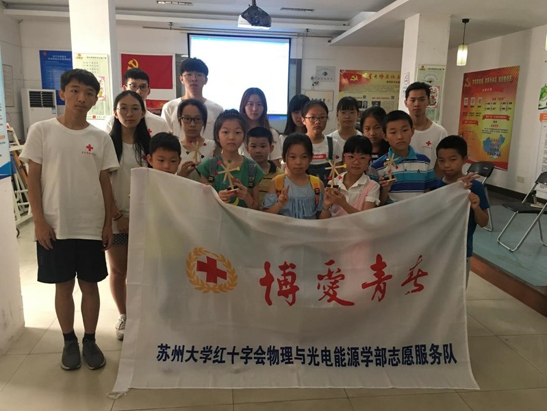 2018年7月13日清晨,苏州市红十字会博爱青春项目、苏大“小青柠”公益团的志愿者们前往锦帆路社区开展志愿活动。等待学生们到齐后,志愿组成员准时开始了今天的劳技课程—自制电动小风车。