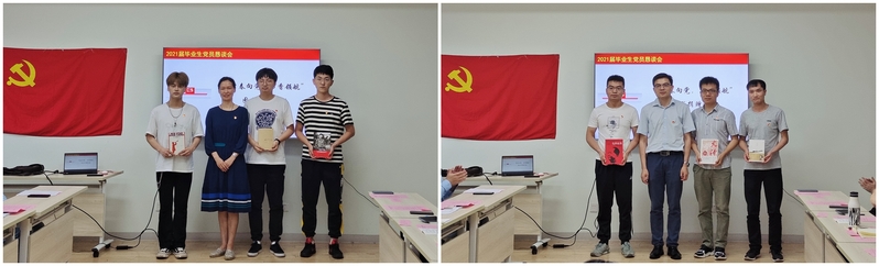 沙书记通过周总理的十条家规勉励毕业生党员,要时刻牢记共产党员的身份,以严格的准绳要求自己,廉洁自律做合格党员,为祖国和人民多做贡献。晏院长寄语毕业生党员,走上工作岗位后要不断加强自身党性修养,听党话、跟党走,同时慎言笃行,提升综合能力素质,在各自的领域发光发热。张书记对毕业生党员提了两点要求,一是要不断提升思想理论水平、发挥党员的先进性;二是要戒骄戒躁、谨言慎行,踏实走好每一步。