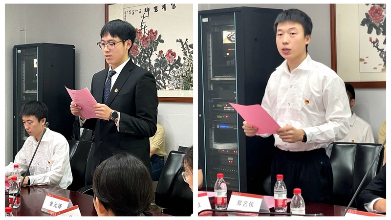 “每个老党员都是党史的见证者、先行者、奋斗者,他们用实际行动彰显了共产党人的为民初心,赓续一往无前的奋斗精神。未来将以更高的要求发展自我,以期为社会做出更多的贡献”。“在建党100周年之际,一代又一代共产党人以如磐信念、如铁信仰,撑起了百年大党的铮铮脊梁。作为青年一代的新党员,要以党员前辈们为标杆和榜样,传承好我们党的光荣传统和优良作风。”会上,新党员学生代表朱元泽(2019级新能源器件专业(新中外))、郑艺伟(2019级新能源科学与工程专业博士研究生)先后发言。