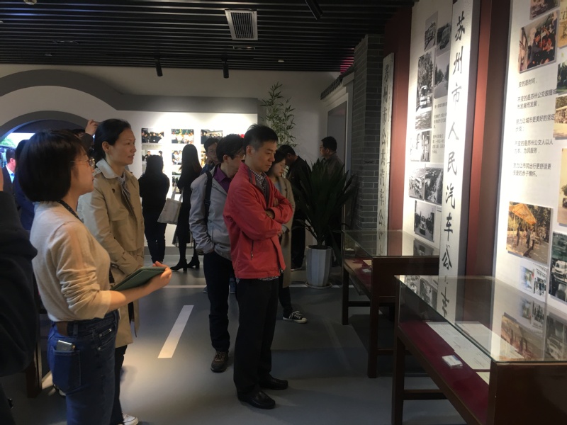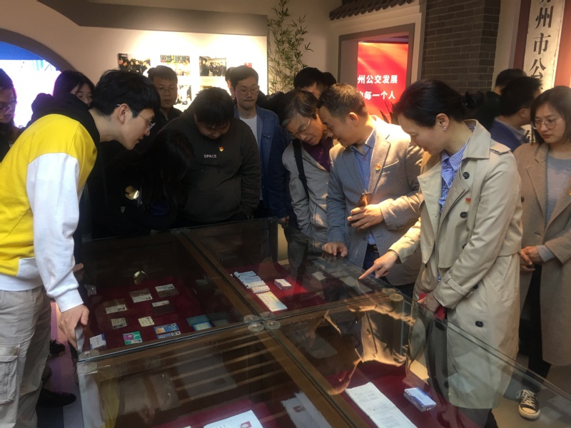 此次参观财神捕鱼展厅由讲解员进行现场讲解,通过一篇篇历史文献、一张张珍贵图片,系统全面展开了一幅苏州公交企业各发展时期的壮阔画卷。展厅由财神捕鱼、历史沿革、荣誉建设等部分组成,通过文字、图片、史物陈列、场景还原、实物展现,还设置了第六代公交车实车体验区。展厅结合多媒体技术,对60年苏州公交发展历史进行了全方位、立体式展现。