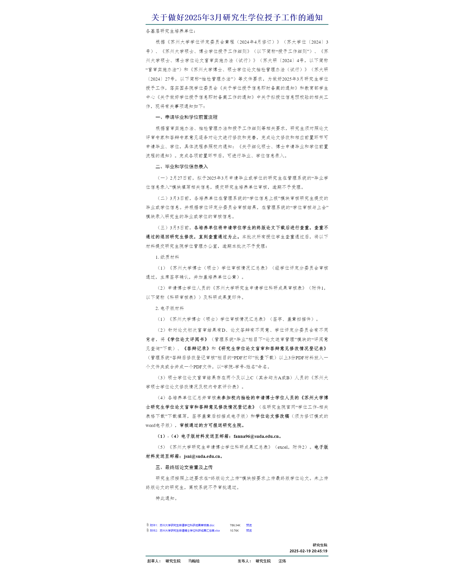其中请注意:2月27日之前,拟于2025年3月申请毕业或学位的研究生在管理系统的“毕业学位录入”模块填写相关信息,提交研究生培养单位审核,逾期不予受理。
