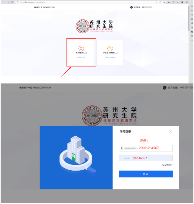 论文查重检测请登录: 财神捕鱼 研究生院-维普论文检测系统网站://cloud.fanyu.com/organ/lib/suda